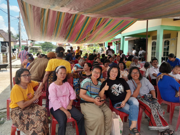 Usai beribadah, 177 kepala keluarga dari Tapian Nauli dan sekitarnya berkumpul merayakan kebersamaan dalam makan bersama, dibiayai gotong-royong warga.