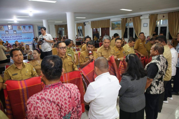 Sebagai bentuk penghormatan dan doa restu, Pemkab Taput memberikan ulos khas Batak kepada seluruh anggota DPRD Provsu Dapil IX.