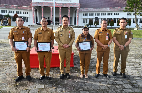 Penghargaan tersebut diberikan kepada Baktiar Pane, S.H.,M.A.P Sekcam Tarabintang; Riani Marbun, S.Pd Penelaah Teknis Kebijakan Kantor Camat Tarabintang dan Barneges,S.Kom Kabid Pengembangan, Penilaian Kinerja Aparatur dan Disiplin BKPSDM.