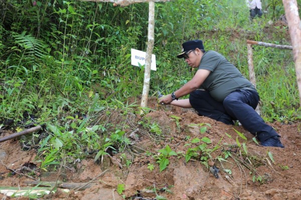 Tarutung, Kabarnas.com – Bupati Tapanuli Utara (Taput), JTP Hutabarat, bersama Wakil Bupati Deni Lumbantoruan, melaksanakan aksi penanaman pohon di kawasan wisata religi Salib Kasih, Kec. Siatas Barita pada Kamis (10/04/2025). Dalam kegiatan tersebut, mereka menanam sebanyak 500 bibit pohon dari jenis Pinus, Suren, dan Mahoni.