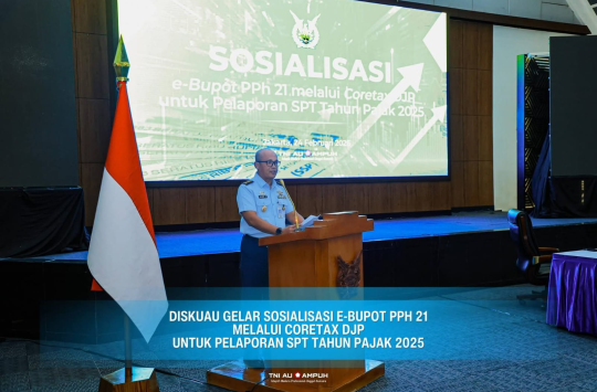 JAKARTA – Dinas Keuangan TNI Angkatan Udara menggelar sosialisasi Bukti Potong Pajak Penghasilan Pasal 21 (e-Bupot PPh 21) melalui sistem Coretax Direktorat Jenderal Pajak (DJP) dalam rangka pelaporan SPT Tahun Pajak 2025. Kegiatan berlangsung di Gedung Suharnoko Harbani, Mabesau, Jakarta, Selasa (24/2/2026).