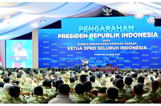 Magelang -Presiden Republik Indonesia, Prabowo Subianto, memberikan pengarahan langsung kepada 503 Ketua DPRD dari seluruh Indonesia dalam kegiatan Kursus Pemantapan Pimpinan Daerah (KPPD).