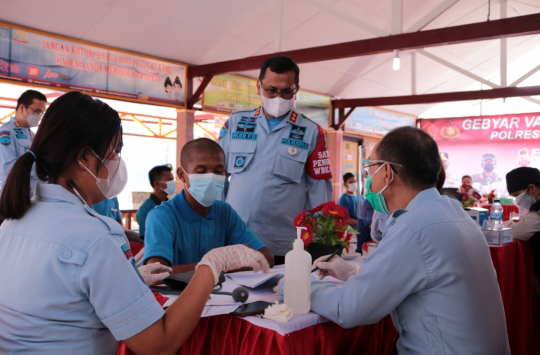 Simalungun - Lapas Kelas IIA Pematangsiantar bersama Polres Simalungun kembali melaksanakan vaksinasi gelombang ke II. Vaksinasi Covid-19 ini merupakan dosis pertama yang diberikan kepada sebanyak 250 narapidana, Kamis (26/8/2021).