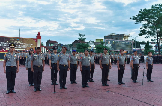 Sebanyak 85 personel Satbrimob Polda Sumut resmi menerima kenaikan pangkat, baik melalui kenaikan pangkat pengabdian maupun kenaikan pangkat reguler. Rinciannya mencakup pengabdian dari AKBP, Kompol, hingga Ipda, serta kenaikan reguler dari Bharaka hingga Kompol. Capaian ini mencerminkan pembinaan karier yang berkelanjutan dan terukur di lingkungan Polri.
