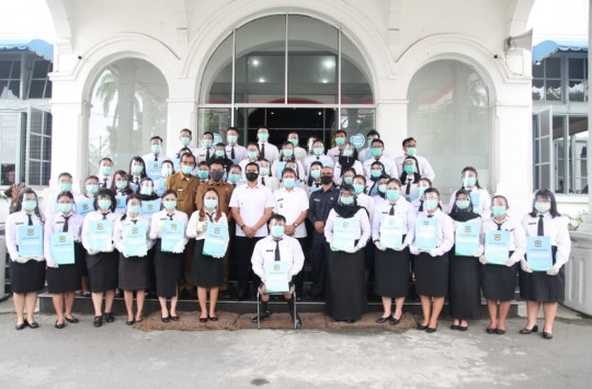 Pematangsiantar, Kabarnaa.com - Sebanyak 90 Calon Pegawai Negeri Sipil (CPNS) formasi tahun 2019 untuk Pemerintah Kota (Pemko) Pematangsiantar menerima Surat Keputusan (SK). SK para CPNS langsung diserahkan Wali Kota Pematangsiantar Hefriansyah didampingi Wakil Wali Kota Togar Sitorus di Ruang Serbaguna Badan Perencanaan, Penelitian, dan Pengembangan Daerah (Bappeda) Kota Pematangsiantar, Selasa (29/12/2020) pukul 10.00 hingga 12.00 WIB.
