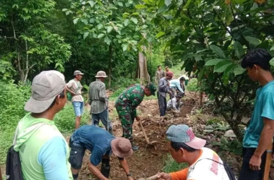 Gotong royong tersebut difokuskan pada pembersihan dan penataan saluran irigasi yang tengah diperbaiki. Saluran itu mengalami kerusakan setelah tembok penahan jebol akibat hujan deras beberapa waktu lalu. Kondisi tersebut menghambat aliran air yang menjadi sumber utama irigasi bagi lahan pertanian warga.