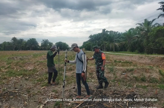 malungun, Kabarnasid - Sebagai dukungan terhadap program ketahanan pangan, anggota Koramil 10/Tanah Jawa dari Kodim 0207/Simalungun, Serka Suhadi, melakukan pendampingan dan turun ke lapangan bersama warga di Huta Bahalat-2, Nagori Mekar Bahalat, Kecamatan Jawa Maraja Bah Jambi, Kabupaten Simalungun. Kegiatan penanaman jagung di lahan seluas 9 rante milik Dodi Saragih ini berlangsung pada Sabtu (08/11/2025).