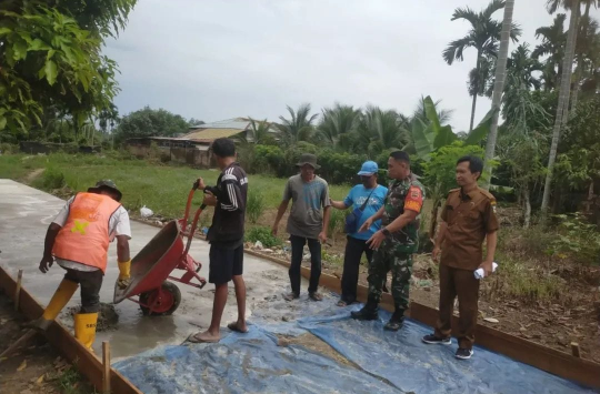 Pematangsiantar - Babinsa Koramil 04/Siantar Barat, Kodim 0207/Simalungun, Serka Hendra Gunawan, melaksanakan kegiatan Komunikasi Sosial (Komsos) sekaligus memantau progres pembangunan sarana dan prasarana yang digerakkan Kelompok Masyarakat (Pokmas) Bangkit Bersama di Kelurahan Bahkapul, Kecamatan Siantar Sitalasari, Kota Pematangsiantar, Selasa 25 November 2025.