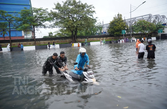 Langkah tersebut dilakukan guna mencegah kerusakan lebih parah pada kendaraan serta menjaga keselamatan pengendara. Selain itu, prajurit TNI AL turut membantu mengevakuasi sepeda motor dan mobil ke tempat yang lebih aman, serta mengatur arus lalu lintas bersama aparat terkait.