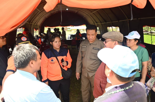 Humbahas - Dr Oloan Paniaran Nababan, Bupati Humbang Hasundutan (Humbahas), bersama jajaran pejabat termasuk BNPB (melalui Direktur Fasilitasi Penanganan Korban dan Pengungsi Nelwan Harahap), Sekda Chiristison Rudianto Marbun, dan pimpinan OPD, menggelar rapat koordinasi di posko darurat bencana banjir dan longsor di Desa Panggugunan, Kecamatan Pakkat, Minggu (30/11/2025).