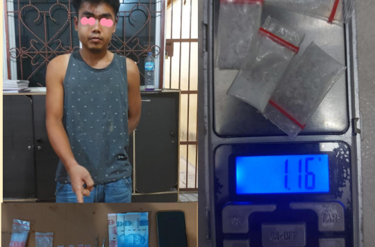 Adapun barang bukti antara lain, 4 bungkus plastik klip transparan berisi diduga narkotika jenis sabu dengan berat kotor atau bruto 1,16 gram, 1 buah kaca pirex, 1 pipet plastik, 1 plastik klip besar berisi 30 plastik klip kecil kosong.