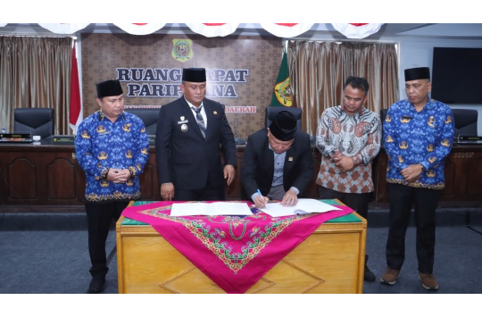 Penandatanganan dilakukan oleh Wakil Bupati (Wabup) Dairi Wahyu Daniel Sagala yang mewakili Bupati Dairi Vickner Sinaga, bersama Ketua DPRD Dairi Sabam Sibarani dan Wakil Ketua DPRD Helvensius Tondang.