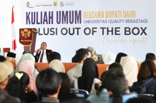 Dairi– Suasana hangat penuh inspirasi terasa di Universitas Quality Berastagi, Selasa (26/8/2025), ketika Bupati Dairi, Vickner Sinaga, hadir langsung memberikan kuliah umum kepada mahasiswa.
