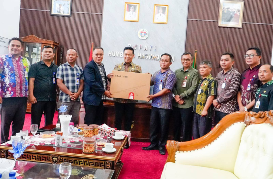 Doloksanggul – Pemerintah Kabupaten Humbang Hasundutan (Humbahas) terus mendorong pemerataan akses teknologi informasi hingga ke wilayah terpencil. Bupati Humbang Hasundutan, Dr. Oloan Paniaran Nababan, S.H., M.H., menyerahkan bantuan satu set perangkat internet satelit Starlink kepada UPT SMP Negeri 040 Sionom Hudon VII Bungus, Kecamatan Parlilitan, sebagai upaya meningkatkan konektivitas internet bagi masyarakat Dusun Bungus.