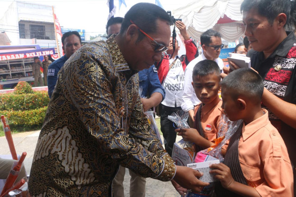 Sebagai bentuk apresiasi, masyarakat yang melakukan pembayaran retribusi menerima cenderamata payung, sementara para pelajar mendapatkan botol minum edukatif.(Loksa Situmeang)