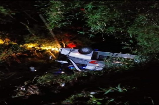 Sumedang, Kabarnas.com - Bus pariwisata dengan membawa penumpang sekitar 63 orang masuk jurang setelah terperosok di Tanjakan Cae, Kecamatan Wado, Kabupaten Sumedang, Rabu (10/3/2021) jelang malam hari.
