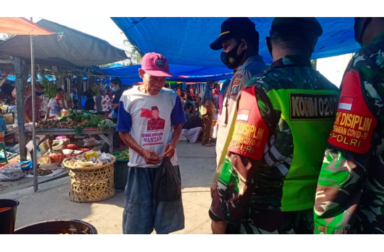 Tidak itu saja para personil juga memberikan teguran dan hukuman fisik yaitu Push Up dan Menyanyikan Lagu Wajib bagi para pedagang dan pengunjung pasar yang tidak memakai masker serta memberikan himbauan sekaligus sosialisasi kepada para pedagang dan pembeli yang berada di pajak untuk wajib memakai masker saat melakukan kegiatan jual beli dan menjaga jarak.