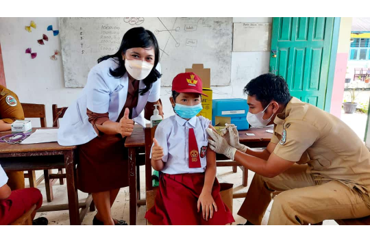 Tapteng - Pemerintah Kabupaten Tapanuli Tengah (Pemkab Tapteng) melalui Dinas Kesehatan bersama TNI-POLRI mulai mengintensifkan kegiatan vaksinasi Covid-19 untuk anak 6-11 tahun di seluruh kecamatan. Vaksinasi anak ini telah dimulai pada 29 Desember 2021 dan untuk dosis pertama telah mencapai di atas 70%.