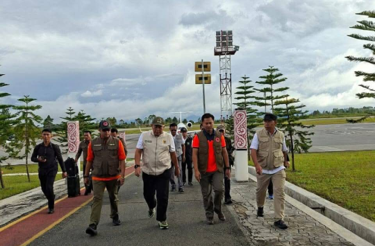 Silangit - Bupati Tapanuli Utara (Taput), Jonius Taripar Parsaoran Hutabarat, menyambut kedatangan Cucun Ahmad Syamsurijal Wakil Ketua DPR RI / Korkesra dan Ketua Timwas Bencana DPR RI bersama sejumlah anggota tim di Bandara Bandara Silangit, Kecamatan Siborongborong, pada Minggu (30/11/2025). Kedatangan rombongan DPR ini bagian dari upaya penyaluran bantuan serta pemantauan langsung kondisi pasca-bencana di Taput.