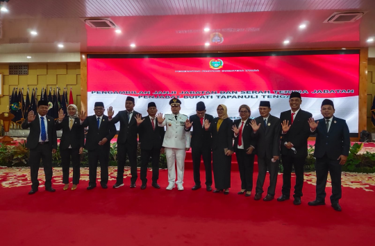 Medan - Inspektur III Inspektorat Jenderal Kementerian Dalam Negeri, Elfin Elyas Nainggolan dilantik menjadi Penjabat Bupati Tapteng, menggantikan Yetty Sembiring, SSTP, MM. Pelantikan Elfin sebagai Pj Bupati Tapteng dilakukan Gubernur Sumatera Utara, Edy Rahmayadi, di Aula Raja Inal Siregar, Senin (14/11/2022).