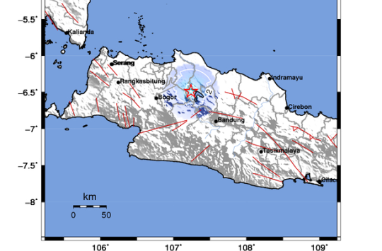 Mengutip laman Badan Meteorologi, Klimatologi dan Geofisika (BMKG), pusat gempa terletak di laut pada koordinat 6,49 LS – 107,24 BT , atau tepatnya berlokasi di darat 15 km arah Tenggara Kabupaten Bekasi, di kedalaman 3 KM.