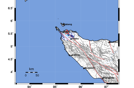 Mengutip laman BMKG dalam rilisnya jam07:34:23 WIB, lokasi pusat (Episenter) gempa terletak pada titik koordinat, 5,55 Lintang Utara (LU), 95,46 Bujur Timur (BT) , atau tepatnya berlokasi 38 KM di Darat, Barat Laut, Jantho di kedalaman (Hiposenter) 5 KM.
