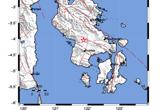 Mengutip laman BMKG pada jam 16:01:22 WIB, lokasi pusat (Episenter) gempa terletak pada titik koordinat, 4,04 Lintang Selatan (LS) – 121,87 Bujur Timur (BT) , atau tepatnya berlokasi di darat 1 KM Tenggara Tirawuta, Kolaka Timur, di kedalaman (Hiposenter) 17 KM.