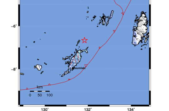 koordinat, 6,67 Lintang Selatan (LS) 131,84 Bujur Timur (BT) , atau tepatnya berlokasi 149 KM di Laut Barat Daya, MalukuTenggara, di kedalaman (Hiposenter) 135 KM.