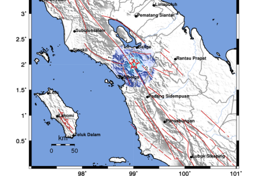 Mengutip laman BMKG lokasi pusat (Episenter) gempa terletak pada titik koordinat 2,00 Lintang Utara (LU), 99,01 Bujur Timur (BT) , atau tepatnya berlokasi di Darat 5 KM , arah Tenggara Tapanuli Utara pada kedalaman (Hiposenter) 2 KM .