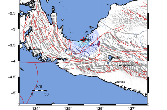 Nabire – Badan Meteorologi, Klimatologi dan Geofisika (BMKG), merilis telah terjadi gempa bumi berkekuatan Magnitudo (M) 4,1 terjadi di darat barat laut Nabire, Jumat (07/03/2025) pada jam 07:28:30 WIB.