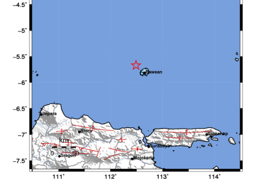 Mengutip laman BMKG lokasi pusat (Episenter) gempa terletak pada titik koordinat 5,67 Lintang Selatan (LS), 112,49 Bujur Timur (BT) , atau tepatnya berlokasi di Laut sejauh 145 KM , arah Timurlaut Tuban di kedalaman (Hiposenter) 6 KM di bawah permukaan laut.