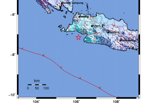 Mengutip laman BMKG pada jam 07:00:10 WIB, lokasi pusat (Episenter) gempa terletak pada titik koordinat, 7,15 Lintang Selatan (LS) 106,11 Bujur Timur (BT) , atau tepatnya berlokasi 29 KM di laut Barat Daya Bayah, di kedalaman (Hiposenter) 17 KM.