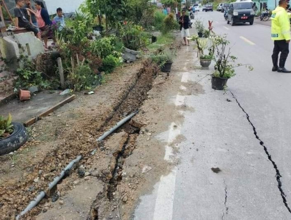 Taput - Gempa bumi yang terjadi di Tapanuli Utara, Sabtu (1/10/2022) sekitar pukul 2.28 WIB menimbulkan banyak bangunan milik warga dan pemerintah rusak, termasuk jalan retak. Sementara untuk korban jiwa, sejauh dikabarkan tidak ada. Namun beberapa warga mengalami luka.