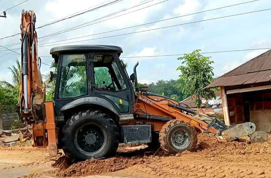 Saat ini, unit backhoe loader dan dump truck difokuskan untuk membersihkan sisa material banjir dan longsor yang masih menutup sejumlah titik vital.