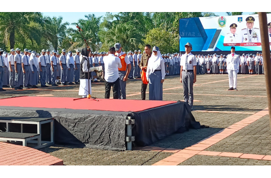 Tibanya Gubernur Sumut, Edy Rahmayadi di SMA Matauli Pandan, dirinyapun langsung menjadi inspektur upacara (Irup) juga melakukan pengukuhan secara simbolis terhadap anak didik dengan memakaikan rompi berwarna orange.