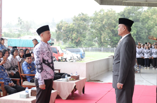 Wakil Bupati Pakpak Bharat, H. Mutsyuhito Solin, Dr, M.Pd, bertindak sebagai inspektur upacara sekaligus membacakan sambutan tertulis Menteri Pendidikan RI, Abdul Mu’ti.