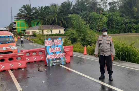 "Kasat Lantas AKP Hendrik Fernandes Aritonang, bersama personel langsung sigap untuk mengatur arus lalu lintas, termasuk melakukan pengecekan di lokasi jalan amblas," ujar Arwansyah.