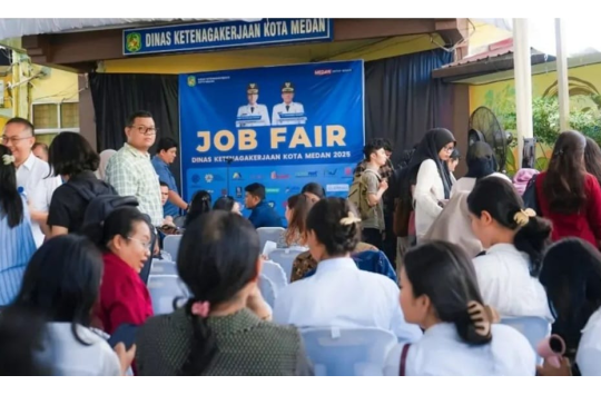 Pelaksanaan Job Fair dilaksanakan di Kantor Disnaker Kota Medan, Jalan K.H. Wahid Hasyim, Kecamatan Medan Baru, Kamis (6/11/2025). Kegiatan ini turut menegaskan komitmen Rico Tri Putra Bayu Waas, Wali Kota Medan, dalam menanggulangi permasalahan lapangan pekerjaan di kota tersebut.