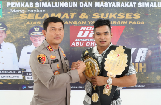 Simalungun - Bertepatan dengan peringatan Hari Pahlawan 10 November, Forum Koordinasi Pimpinan Daerah (Forkompinda) Kabupaten Simalungun mengadakan acara penyambutan khusus kepada sang petarung Road to UFC Jeka Saragih di tanah ‘Habonaron Do Bona’ Simalungun, Kamis (10/11/2022) di Rumah Dinas Bupati di Pamatang Raya.