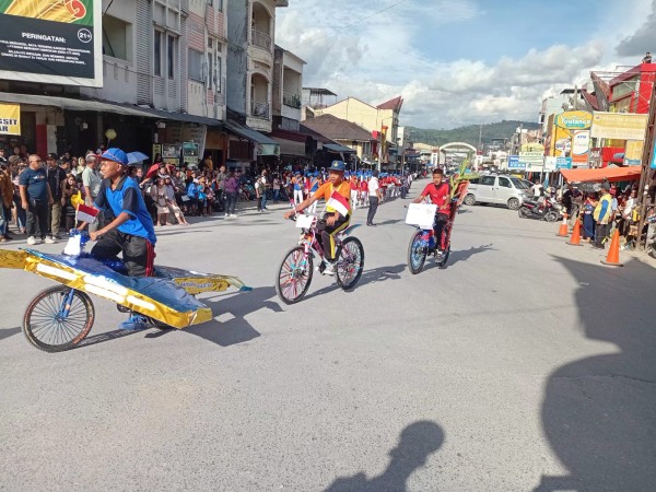 Ribuan warga memadati jalanan utama Tarutung untuk menyaksikan parade mobil hias dan sepeda hias yang menampilkan kreativitas tanpa batas.