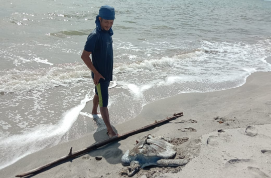 "Identifikasi yang kita lakukan, kita duga penyu mengalami kekerasan, praduganya sengaja dibunuh dan karapasnya dibelah menggunakan alat tajam, terlihat belahan di karapas rapi, ya seperti terkena parang," jelas Ronal.