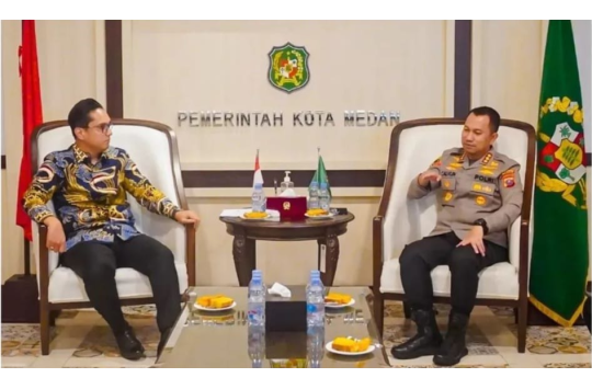 Medan, Kabarnas.id — Wali Kota Medan, Rico Tri Putra Bayu Waas, menyambut kunjungan Kapolrestabes Medan yang baru, Kombes Pol Jean Calvijn Simanjuntak, di Balai Kota Medan pada Kamis (16/10/2025). Kunjungan ini bukan hanya ajang silaturahmi, tetapi juga perkenalan resmi Kombes Jean Calvijn sebagai pejabat Kapolrestabes Medan.