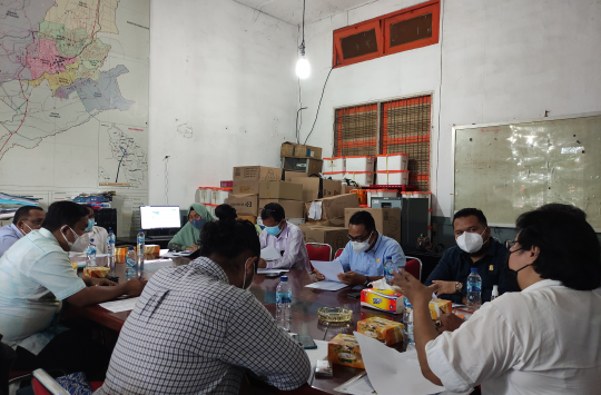 Pematangsiantar - Ketua Komisi III DPRD Kota Pematangsiantar, Denny Siahaan bersama Noel Lingga, Rizki Sitorus, Nurlela Sikumbang, Daud Simanjuntak, Astronaut Nainggolan dan Irwan melakukan kunjungan kerja lapangan ke Kantor BPBD berkaitan dengan bencana khususnya soal penanggulangan Covid-19, selama PPKM level 4.