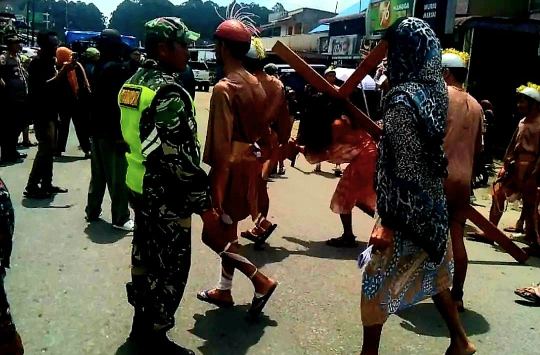 SIMALUNGUN – Dalam rangka memperingati Hari Kematian Yesus Kristus atau Jumat Agung, personel Koramil 13/Purba melaksanakan pengamanan prosesi jalan pikul salib yang diikuti jemaat GKPS Tigarunggu, di Kelurahan Tigarunggu, Kecamatan Purba.