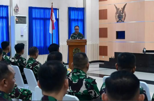 Kabarnas.com - Dankoharmatau, Marsda TNI Asfan Jauhari, S.A.P., M.Si. diwakili Dirpers Koharmatau, Kolonel Tek Ade Budiana, membuka secara resmi kegiatan Implementasi dan Evaluasi Pelaksanaan Piranti Lunak Permildas TNI sebagai upaya untuk menegakkan nilai-nilai dasar kemiliteran. Kegiatan ini berlangsung di Gedung Budi Koharmatau, Bandung, pada Selasa (20/05/2025).