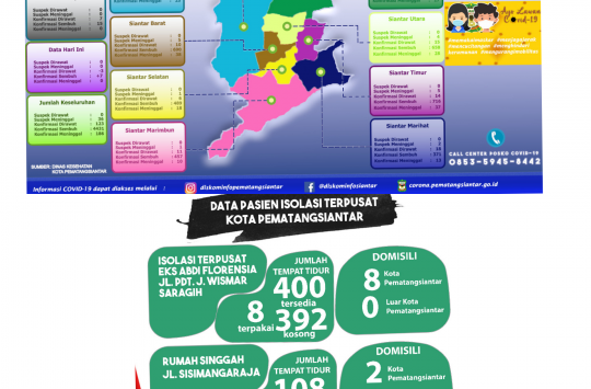 Sebagaimana diketahui, ada dua tempat isolasi di Kota Pematangsiantar. Pertama isolasi terpusat berada di Jalan Pdt Wismar Saragih. Dari 400 tempat tidur, hanya 8 yang terpakai.