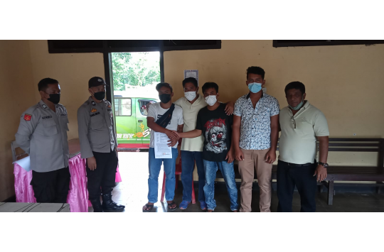 Simalungun - Kapolsek Balata berhasil mendamaikan pertikai yang berujung pengeroyokan antara supir angkutan umum CV Pepabri dengan CV Sinar Murni, Selasa (23/11/2021).