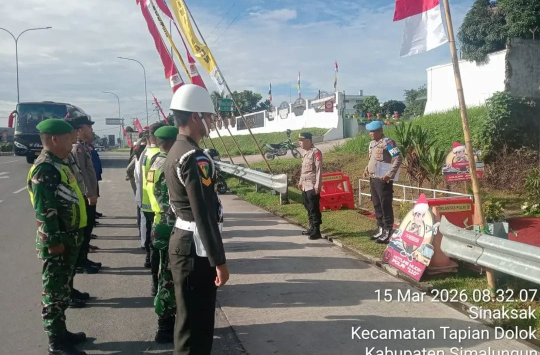 Simalungun - Suasana pengamanan aktivitas masyarakat di wilayah Kabupaten Simalungun tampak semakin siaga pada Minggu pagi (15/3/2026). Personel gabungan dari berbagai instansi melaksanakan pengamanan melalui Pos Pelayanan Terpadu sebagai bagian dari pelaksanaan Operasi Ketupat Toba 2026.
