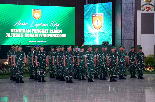 SEMARANG – Pangdam IV/Diponegoro, Mayjen TNI Achiruddin, memimpin langsung acara Laporan Korps Kenaikan Pangkat Perwira Menengah (Pamen) yang digelar di Balai Diponegoro, Rabu (1/4/2026).