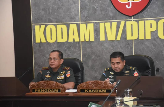 Semarang – Panglima Kodam IV/Diponegoro, Mayjen TNI Achiruddin, S.E., M.Han., didampingi Kasdam Brigjen TNI M. Andhy Kusuma, S.Sos., M.M., M.Han., CFrA, mengikuti video conference (vidcon) yang dipimpin oleh Wakil Panglima TNI, Jenderal TNI Tandyo Budi, S.Sos., terkait rapat evaluasi percepatan pembangunan Koperasi Desa/Kelurahan Merah Putih (KDKMP) di wilayah Kodam IV/Diponegoro, Selasa (6/1/2026).